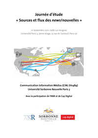 Depuis une vingtaine d'années, la circulation de l'information a été modifiée en profondeur, avec l'apparition de nouvelles pratiques, de nouveaux outils et surtout de nouveaux acteurs. On serait passé des médias « classiques » de l'information - radio, télévision, presse écrite - à la prégnance des transnationales de l'information et de la communication, de l'Internet et ses avatars. L'Internet, le Web 2.0, les sites de réseaux sociaux, Twitter, etc. sont tous des vecteurs de multiplicité, d'ubiquité et d'accélération des flux de toutes natures : des flux d'information-news, qui nous intéressent ici, jusqu'aux flux - interdépendants - des capitaux. Si les nouvelles sont marquées par la notion de « flux », quelle en est la provenance, autrement dit la « source » ? En la matière, l'information étant caractérisée par l'abondance, les sources sont à la fois multiples et changeantes : quelles problématiques cela révèle-t-il ? Les flux parviennent-ils, au moins en partie, à être canalisés par les professionnels de l'information ? Si tel est le cas, par quels dispositifs et selon quelles règles ? par quels agents autrement appelés éclusiers/« gate-keepers ». En outre, s'il semble admis que les dispositifs décrits ci-dessus modifient la rapidité de diffusion des messages, en amplifient-ils pour autant la « résonance » ? Les messages diffusés hors médias et hors intermédiaires traditionnels (telles les agences) parviennent-ils à se distinguer au milieu d'un tel « flot » qui se densifie par l'accroissement de ces pratiques ? La journée d'études Sources et flux des nouvelles, organisée par le laboratoire CIM de l'Université Paris 3 et articulée autour de plusieurs projets de recherche ANR (Archives-AFP, IPRI et OT-Media), aura pour objectif de faire le point sur ces phénomènes.